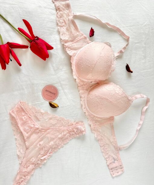 Soutien De Gorge et Culotte Dentelle Florale Rose