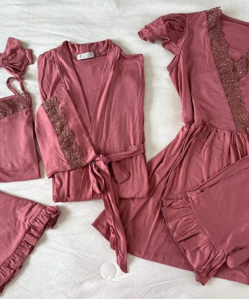 Parure Coton Viscose Vieux Rose 5 pièces & 2 Accessoires
