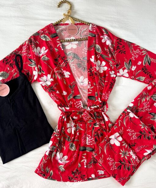 Pyjama 3 Pièces Velours Soft Fleuri Noir