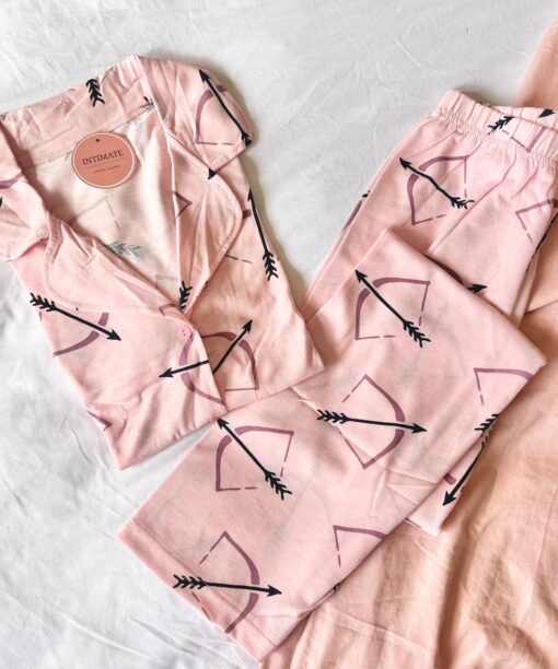 Pyjama Chemise Rose Nude Imprimé Cœurs