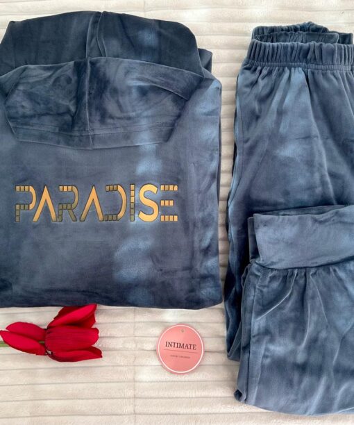 Pyjama Velours Capuche Noir « PARADISE »