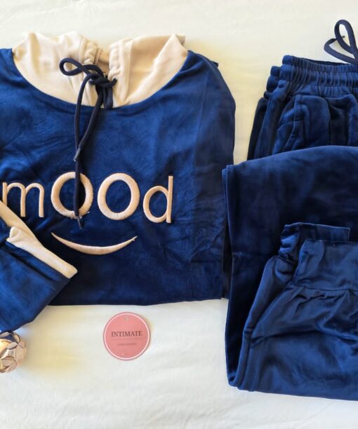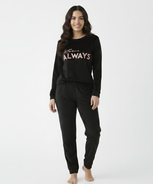 Pyjama Velours Capuche Noir/ Bleu marine « Je T’aime Always »