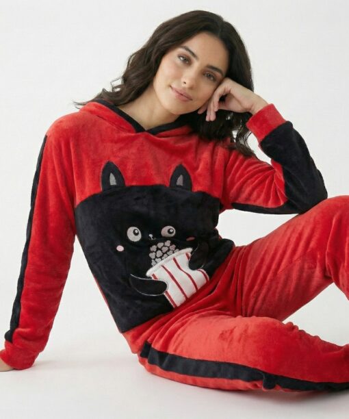 Pyjama Capuche Polaire Noir & Rouge