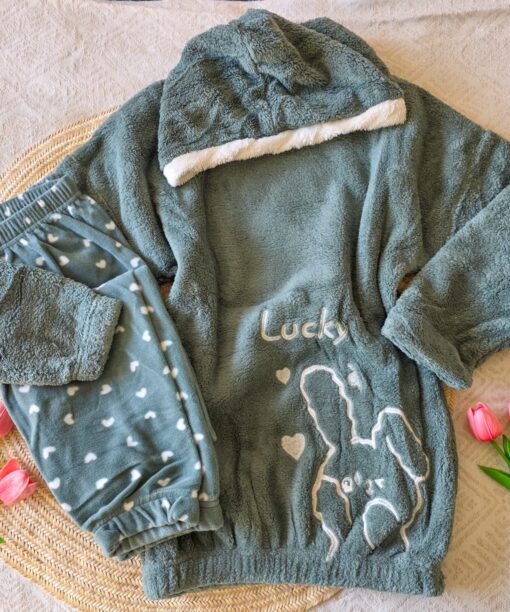 Pyjama Capuche Polaire Vert « Lucky «