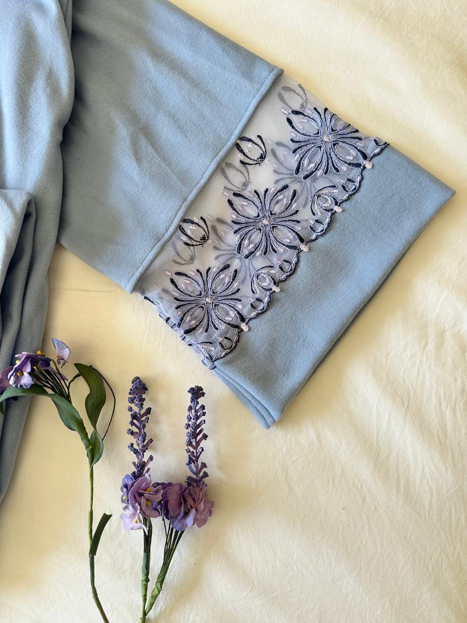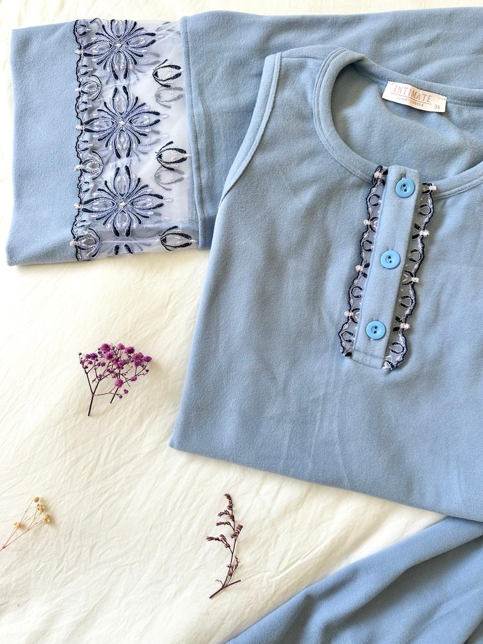 Parure Polaire & Dentelle Bleu Ciel 3 Pièces