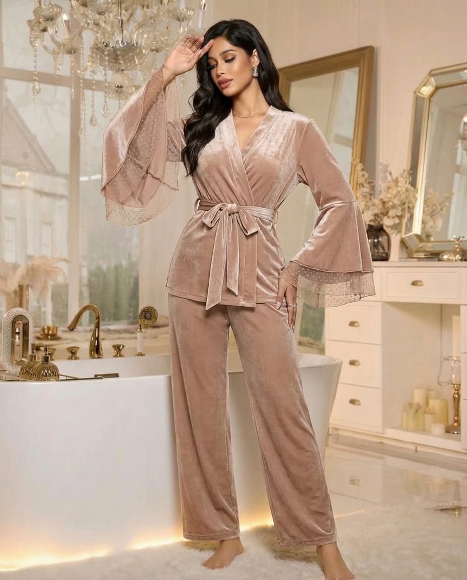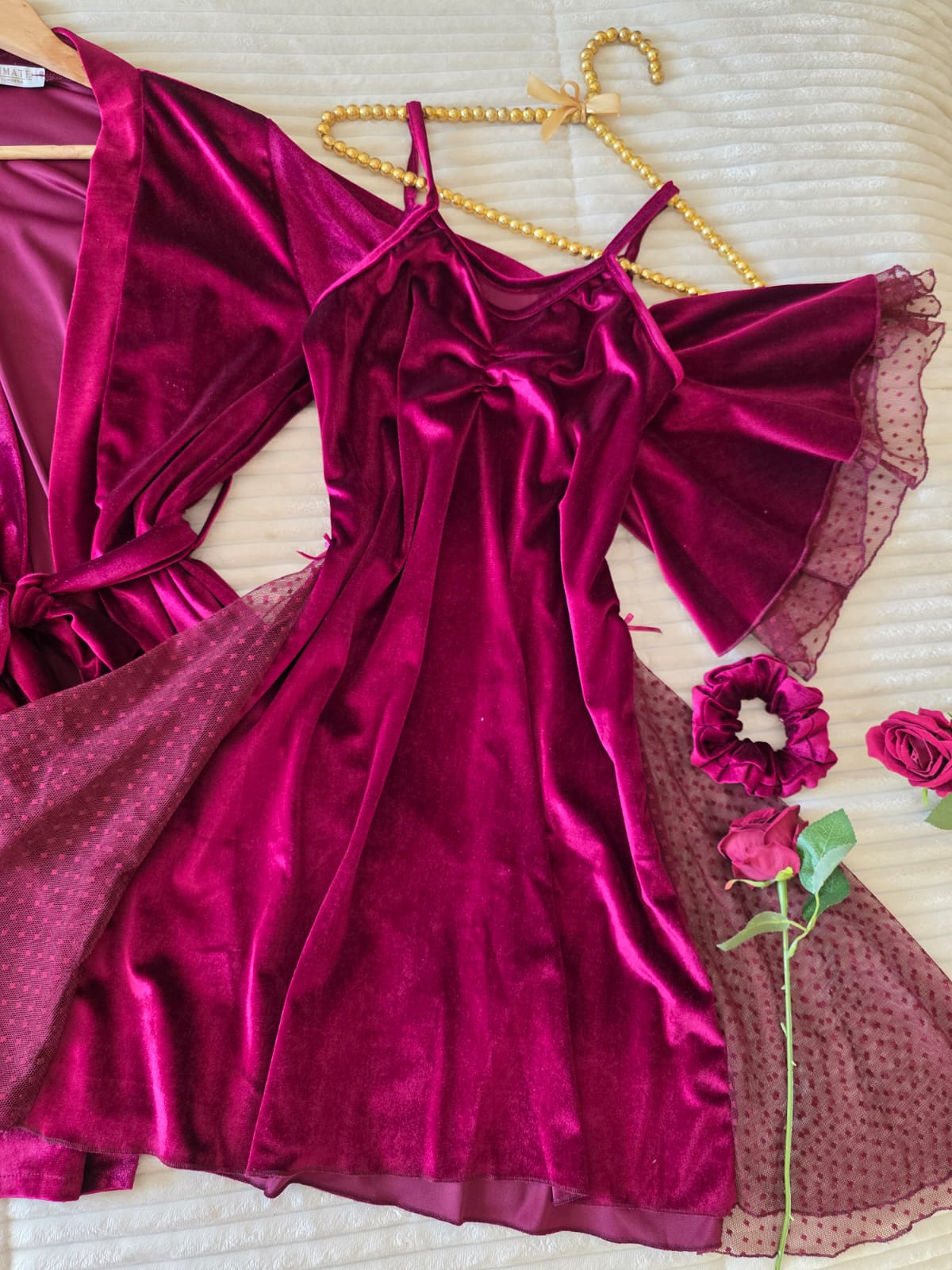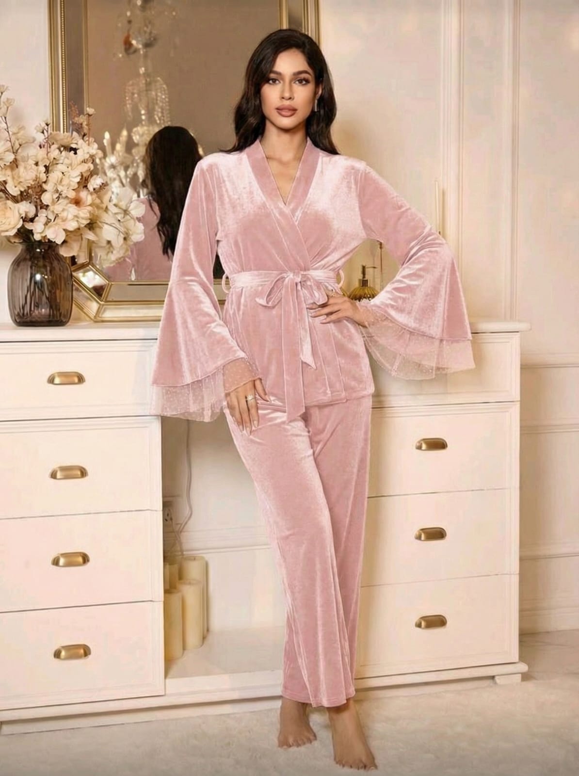 - Déshabillé kimono avec une ceinture à la taille.
