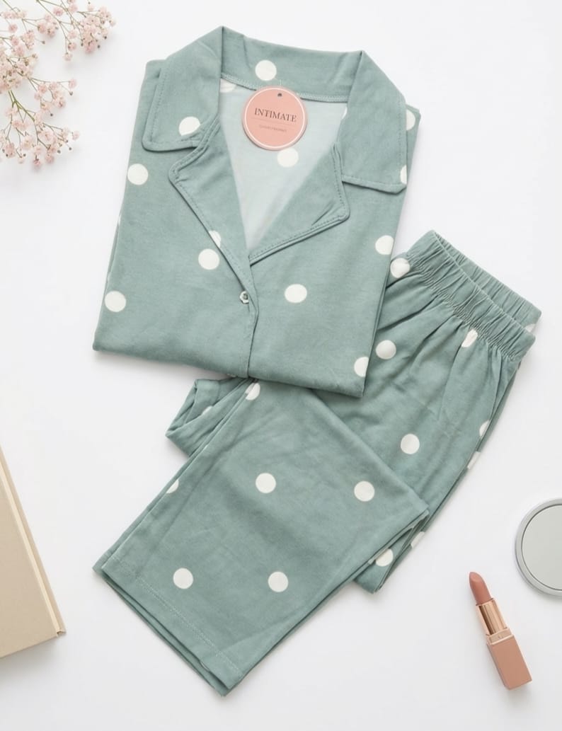 Soyez le premier à laisser votre avis sur “Pyjama Chemise Coton Vert Doux Pointillé”