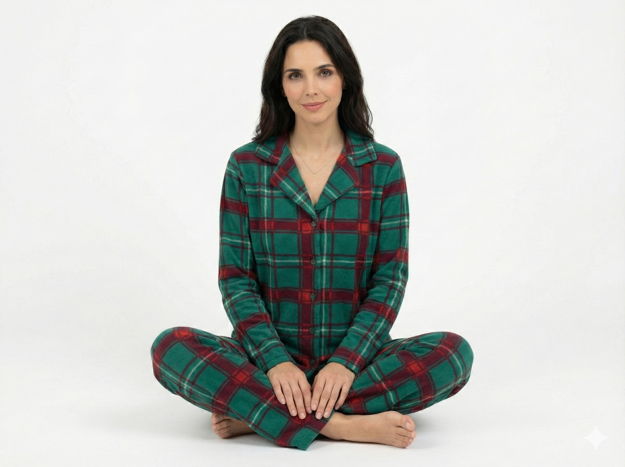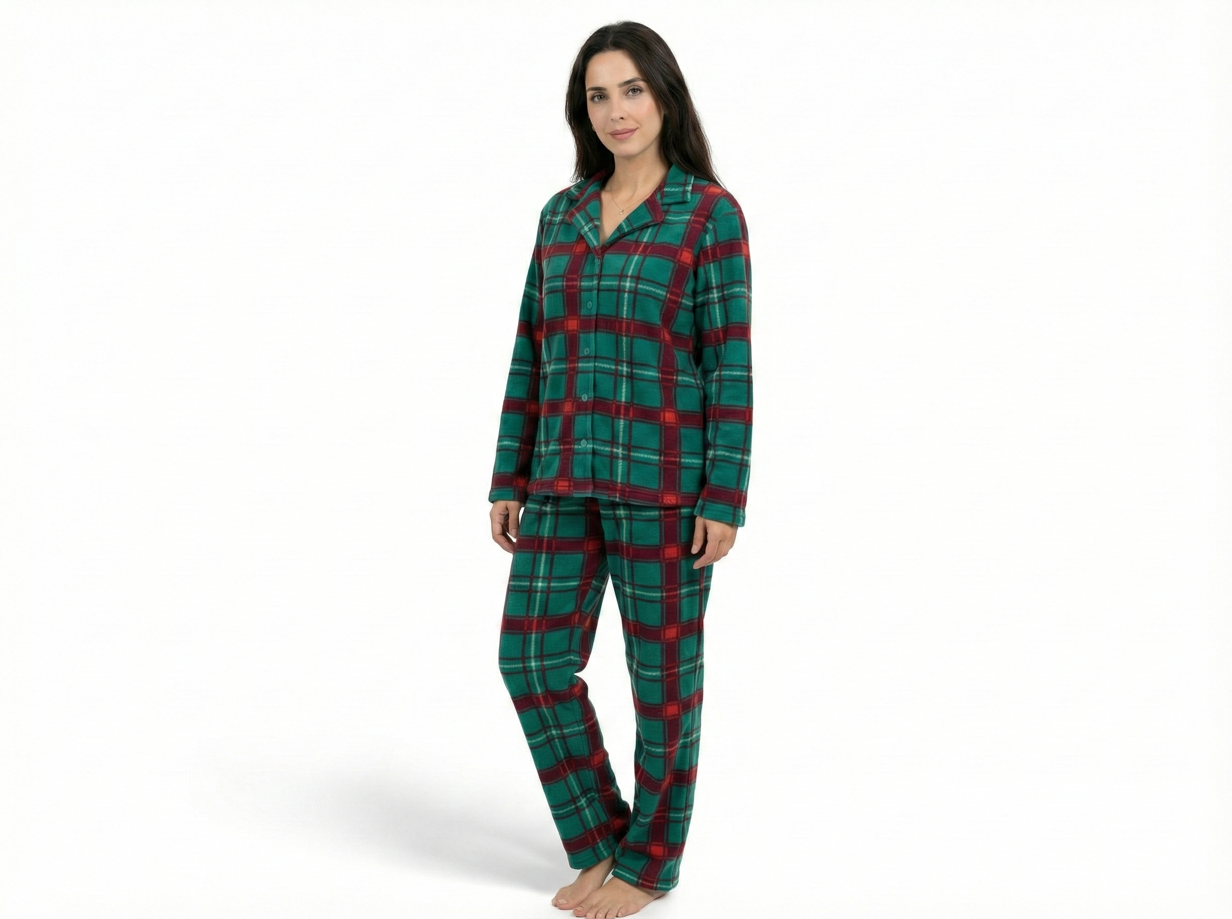 Pyjama Chemise Polaire Vert & Rouge