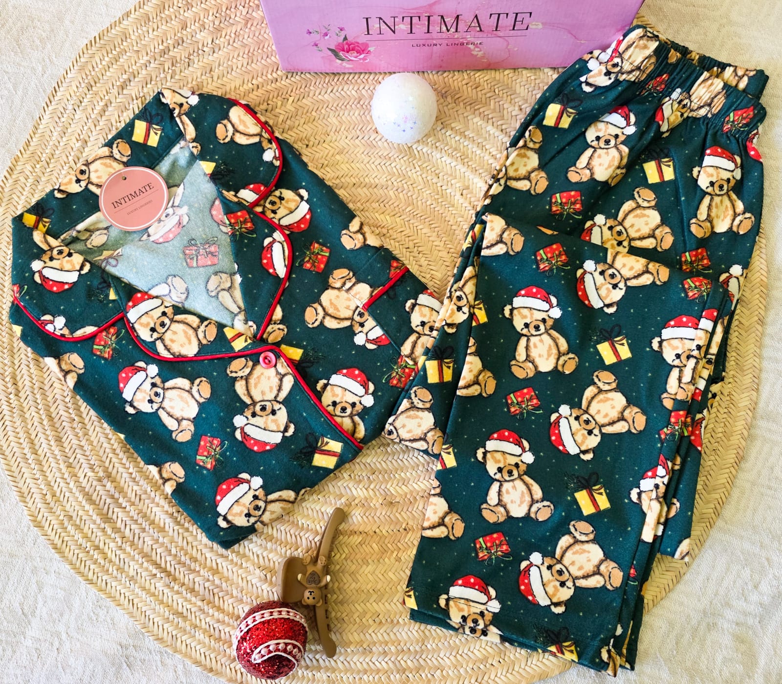 Pyjama Chemise Velours Vert Imprimé Nounours