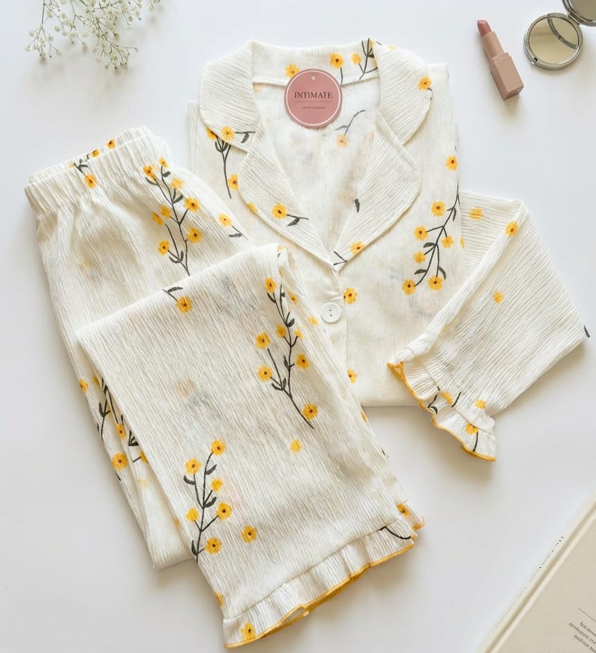 Soyez le premier à laisser votre avis sur “Pyjama Chemise Blanc Imprimé Fleurs Jaunes”