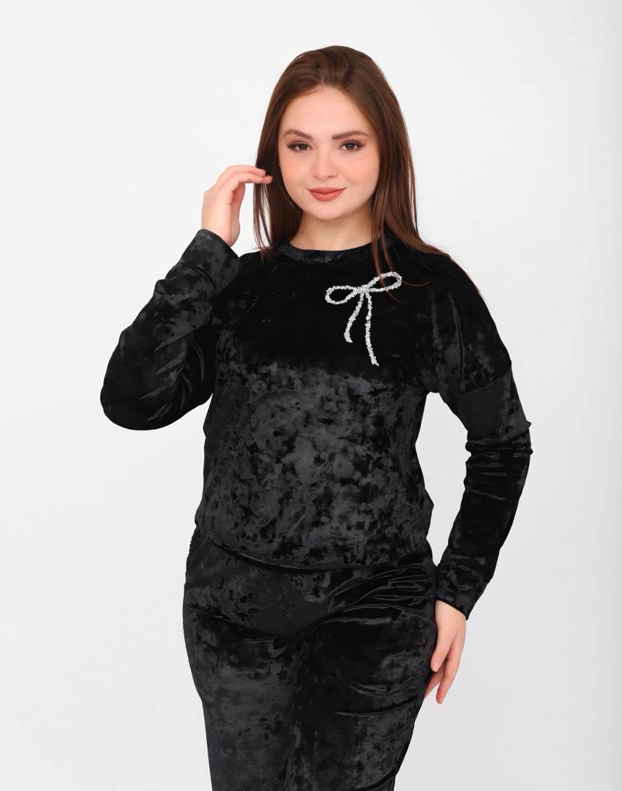 Pyjama Jogging Velours Noir & Paillette Argenté