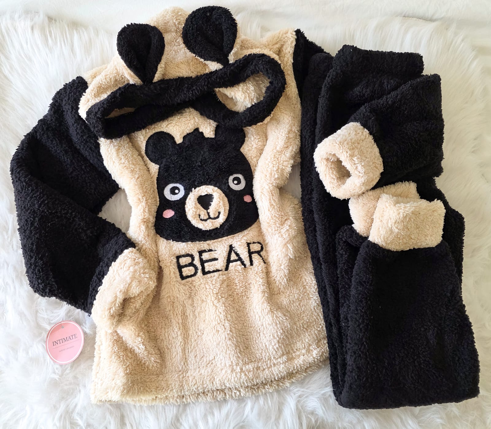 Pyjama Polaire Garçon Beige & Noir Bear