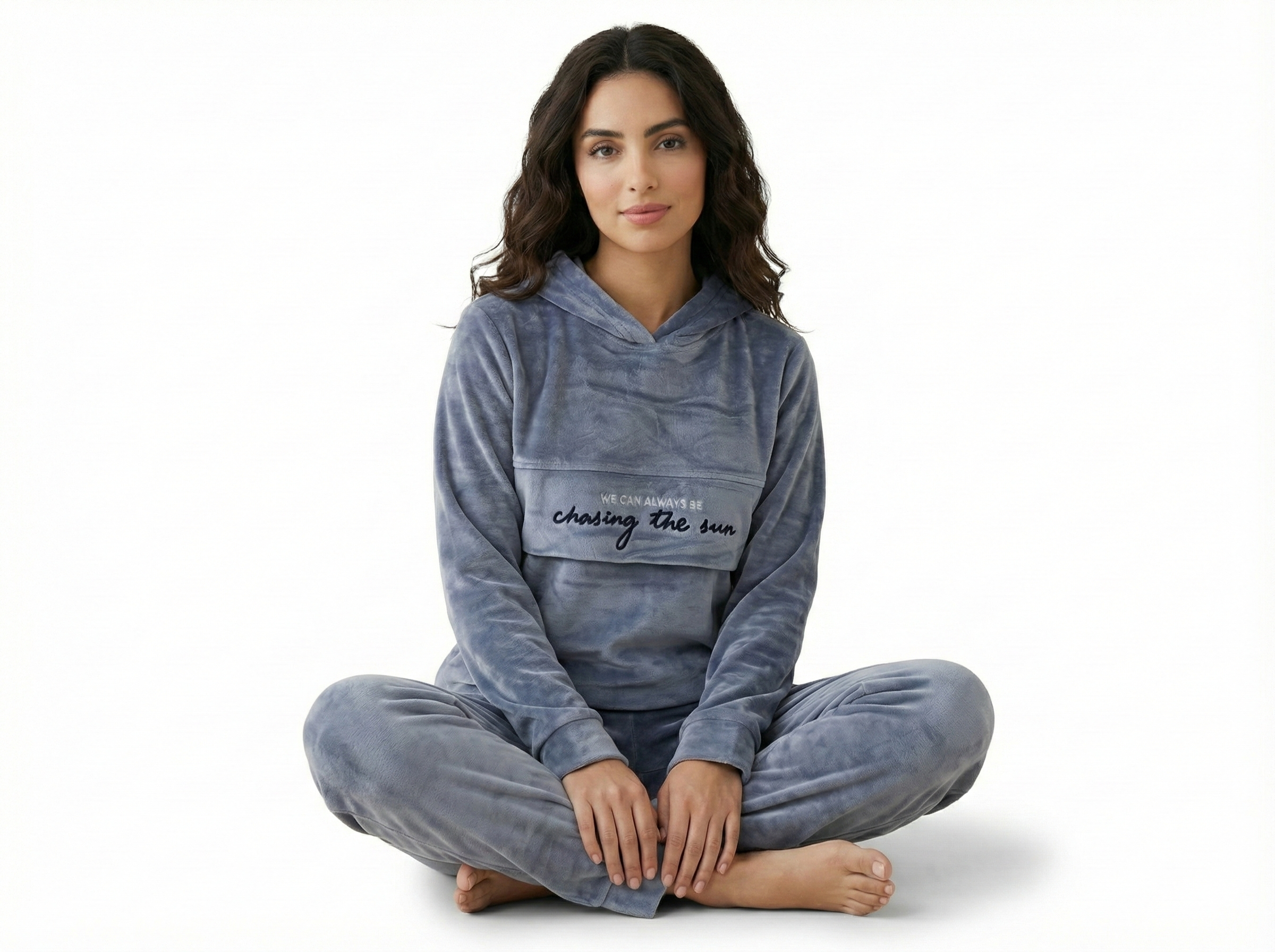 Pyjama Velours Capuche Gris  » Chasing The Sun »