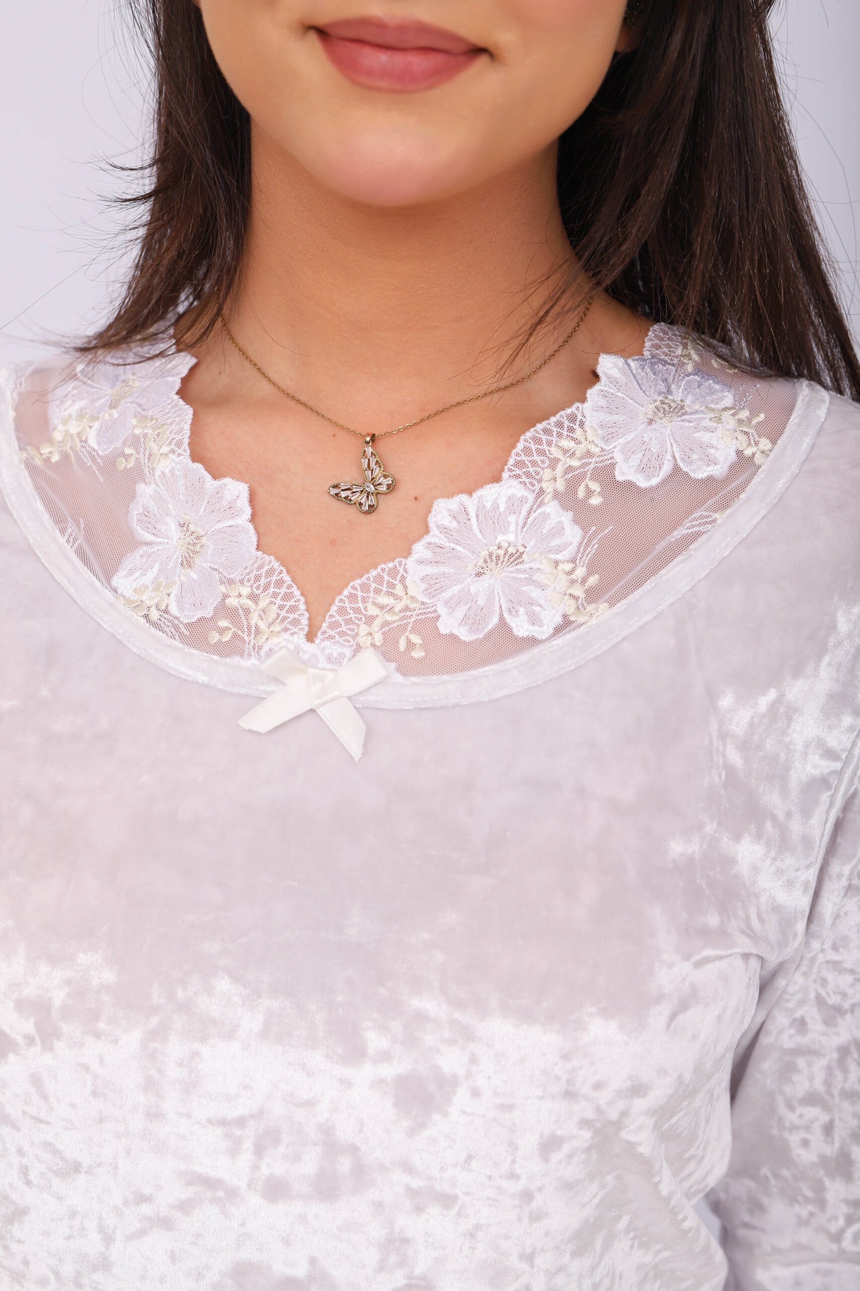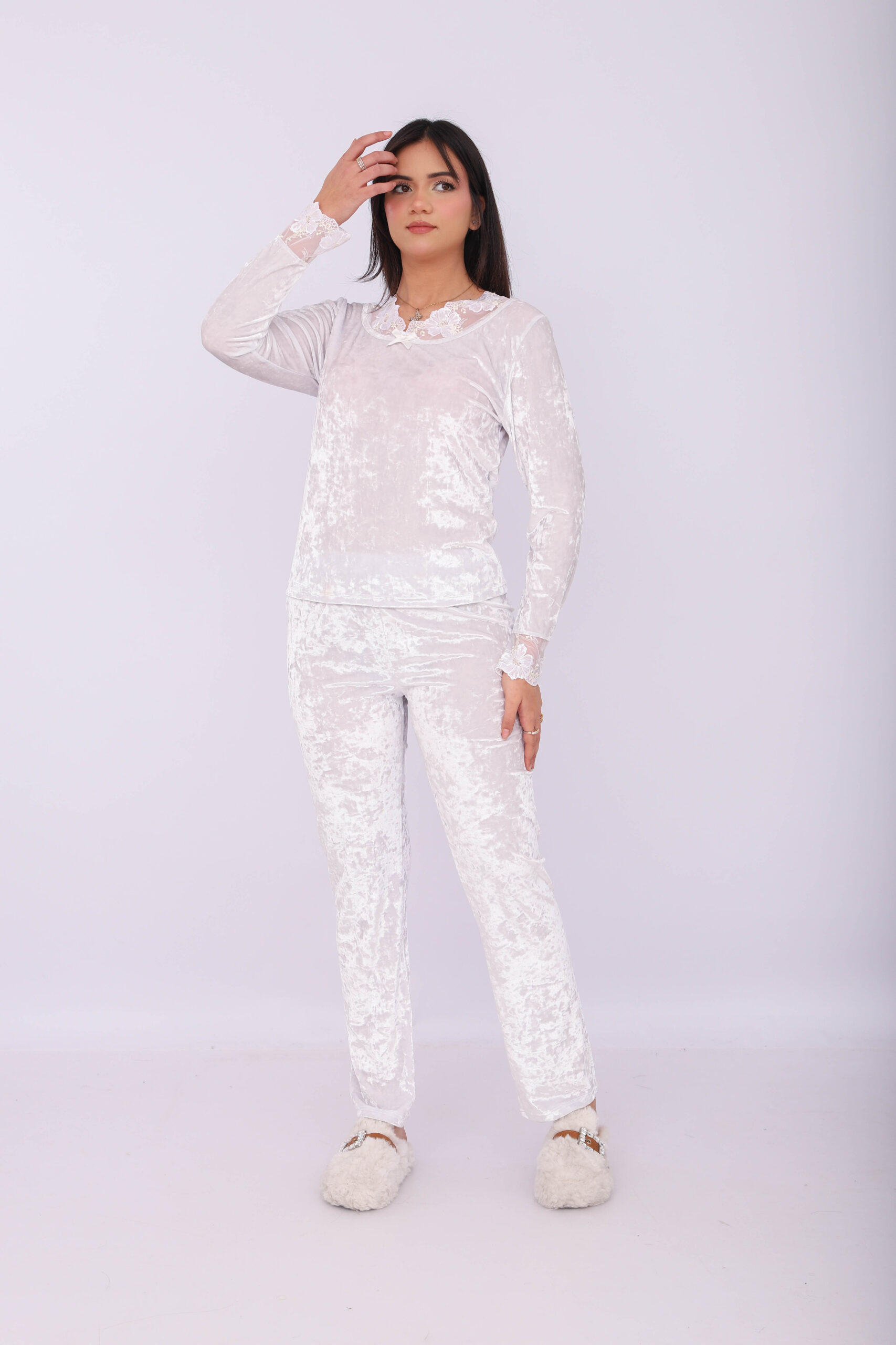 Pyjama Velours & Dentelle Blanc