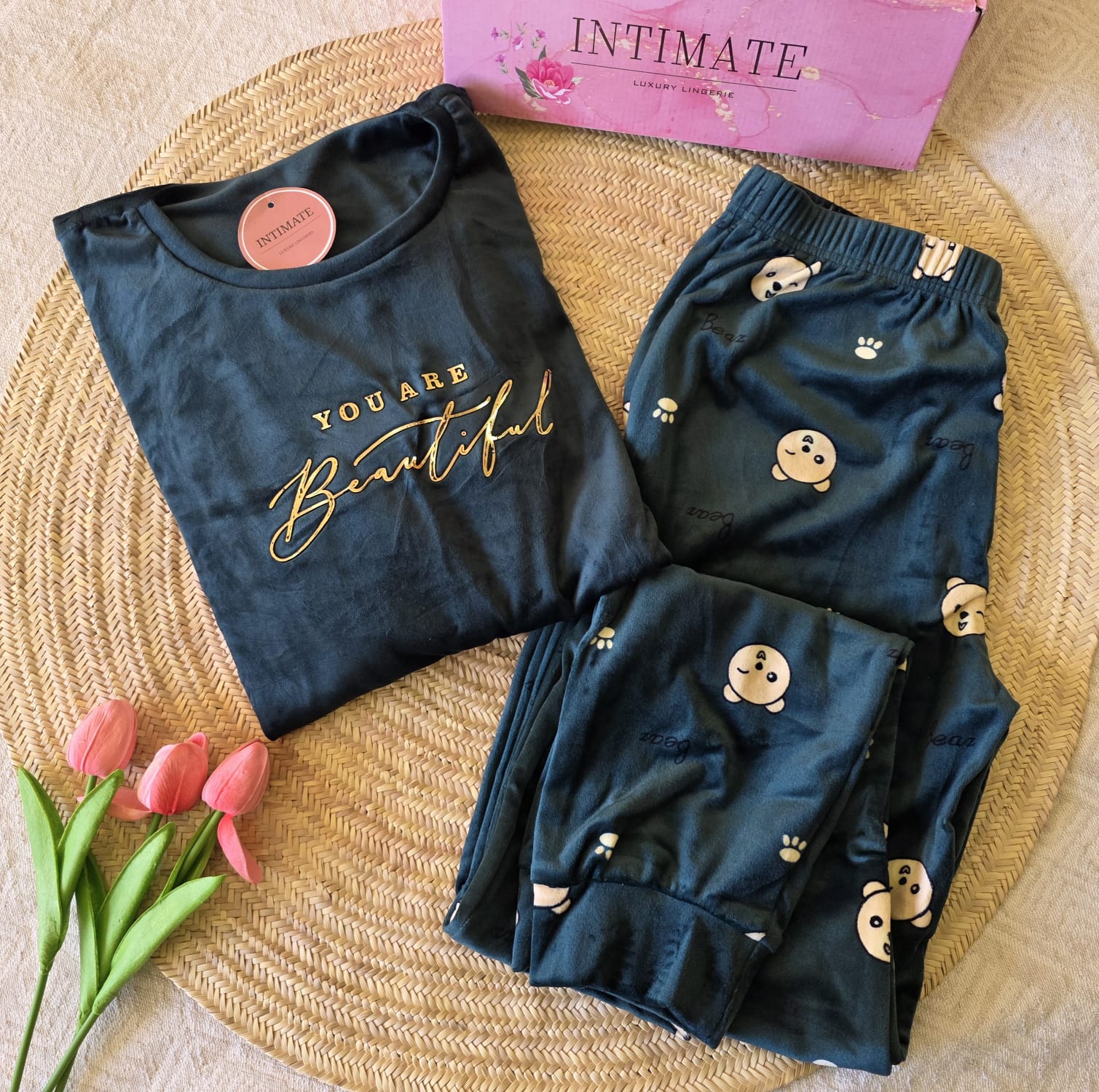 Soyez le premier à laisser votre avis sur “Pyjama Velours Vert « You Are Beautiful »” Annuler la réponse