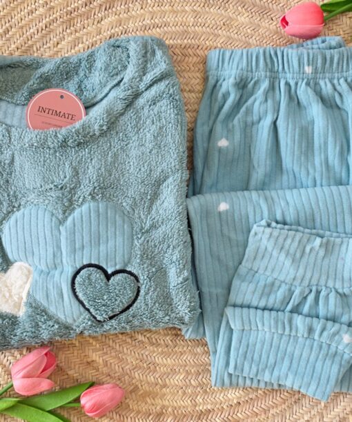 Pyjama Polaire Capuche Bleu Marine Love Yourself